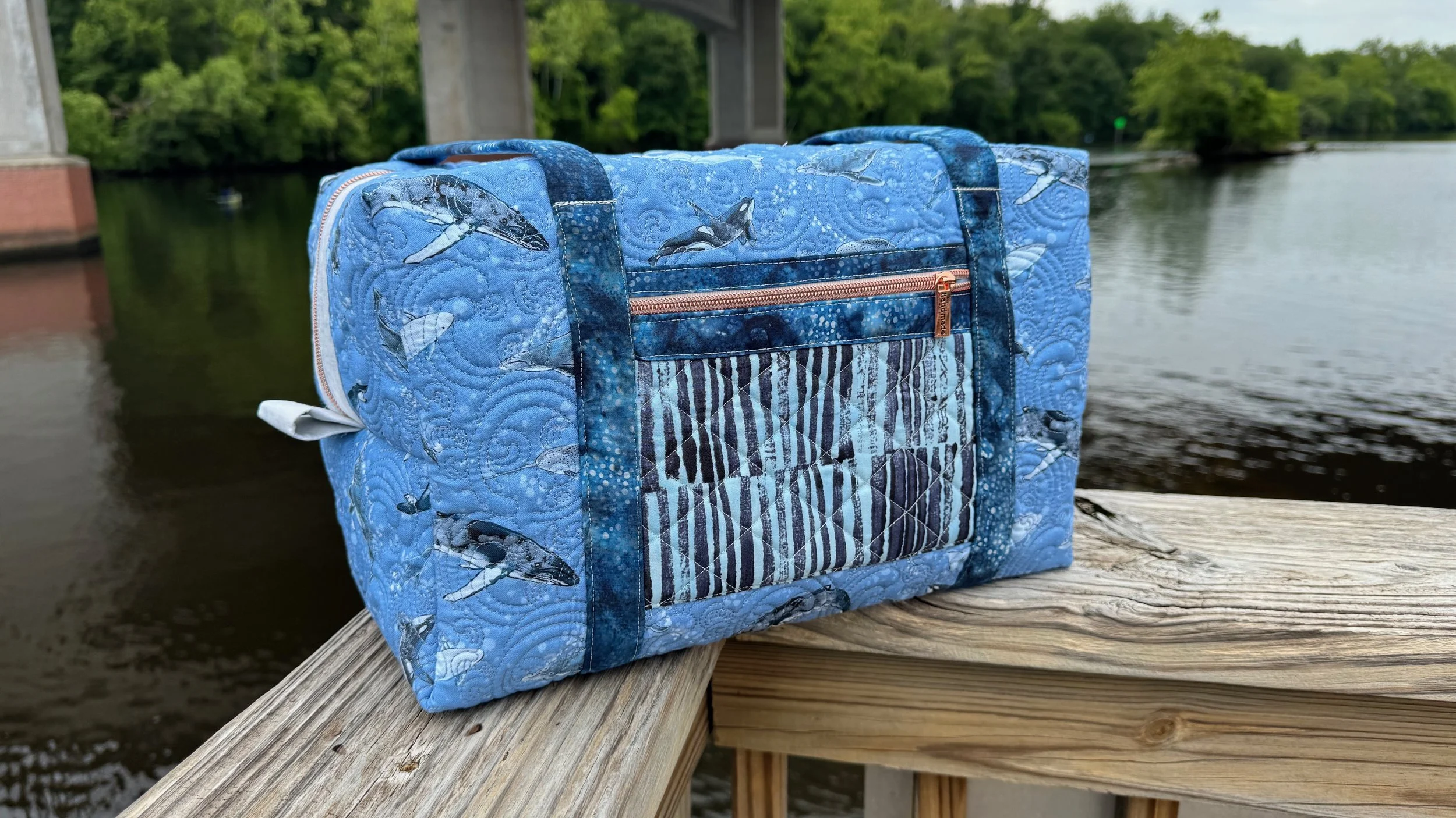 I made two versions, each with its own personality. The first one used a charming whale print I’d been hoarding in my stash from Timeless Treasures—I’d been saving it for just the right project, and this bag was it! The second one featured the bold, colorful energy of Tula Pink’s Untamed collection, which gave it a totally different, vibrant vibe. It’s amazing how fabric choices can completely transform a project.